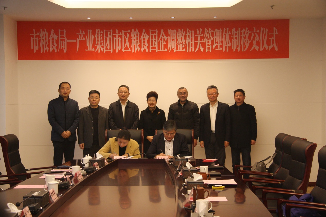 12月27日,產(chǎn)業(yè)集團(tuán)與市糧食局在產(chǎn)業(yè)集團(tuán)二樓會議室舉行無錫市糧食國企調(diào)整相關(guān)管理體制移交確認(rèn)書簽字儀式。市政府副秘書長鈕素芬、市國資委主任許可、副主任葉再熙,市糧食局黨委書記、局長周學(xué)東、副局長吳莉萍、黎平陽,市財(cái)政局副局長孫文華,產(chǎn)業(yè)集團(tuán)黨委書記、董事局主席蔣國雄、副總裁張曉耕出席簽字儀式。